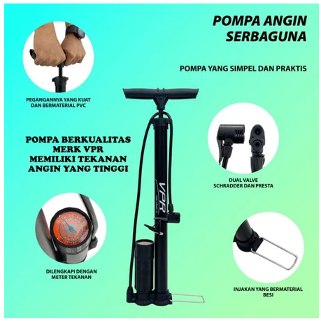 VPR Pompa Angin Ban Sepeda Dan Motor Kompa Sepeda Meter Tekanan Manual Dual Pentil Alloy
