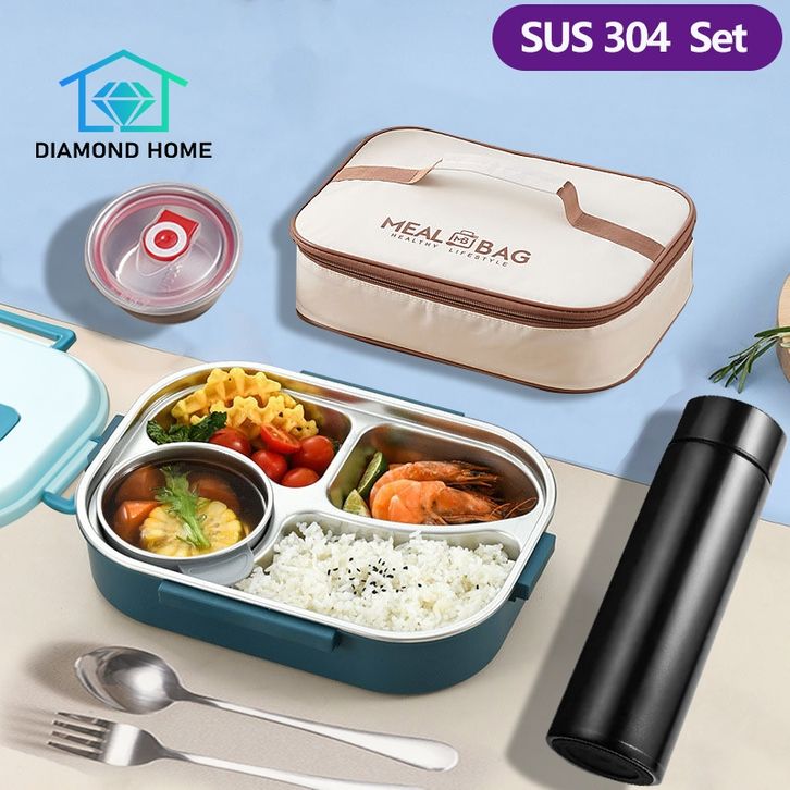 Lunch Box Kotak Makan Set Stainless 304 Sekat 4/5 1500ml Anti Tumpah Sendok Garpu Kotak Bekal