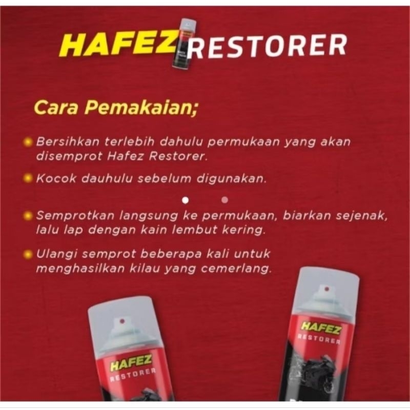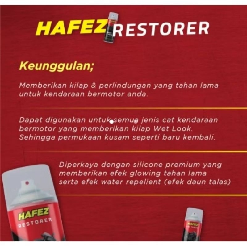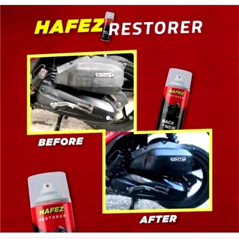 Hafez restorer - Spray- Pembersih pengkilap / Penghitam Body motor, mobil Neto 400 ml