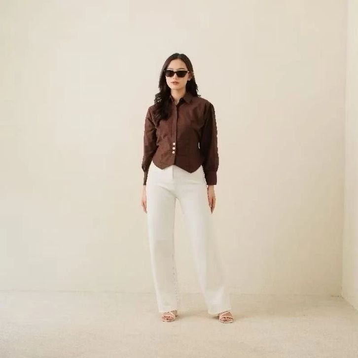 Atasan Wanita Kekkinian Sanju Blouse Halinka Blouse korean style Motif Polos Lengan Panjang Terbaru Best Seller Murah