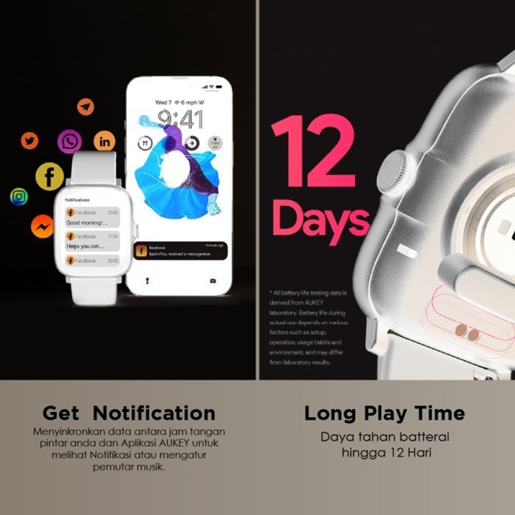 Smartwatch Aukey SW-1P 1.69 inch TFT Display Fitness Tracker 100+ Sport Mode Bluetooth Call & Health