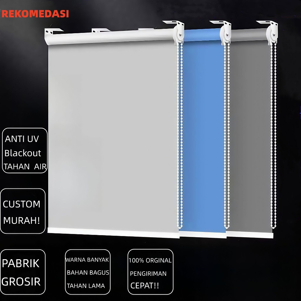 Roller Blind Blackout Roller Blind Dimout Tirai Gorden Korden Hordeng Jendela Gulung Minimalis Anti UV Custom Ukuran (