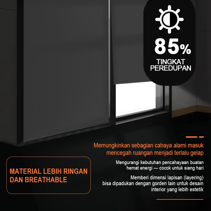 ❤️Ready Stock❤️ Roller Blind Gorden Jendela Semi Blackout 85% Dengan Rel Kepala -Tirai Jendela Gulung Untuk Indoor/Ondoo