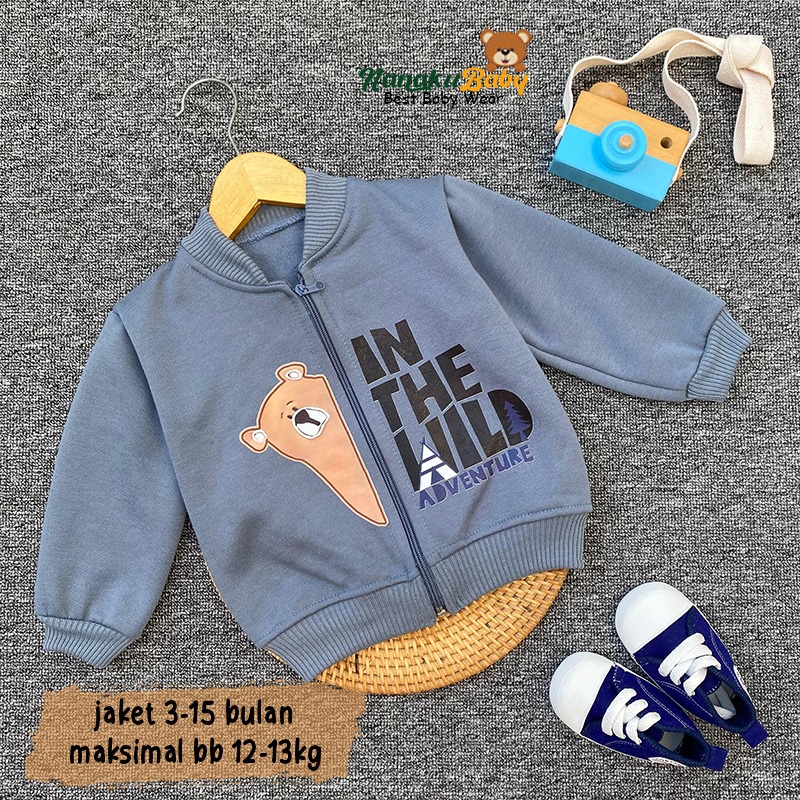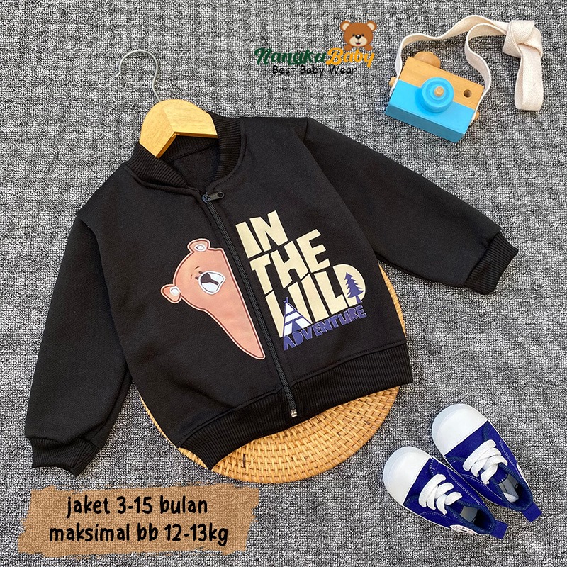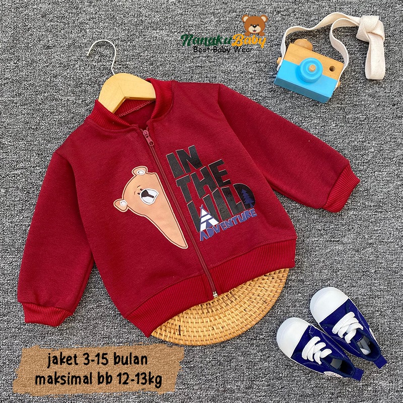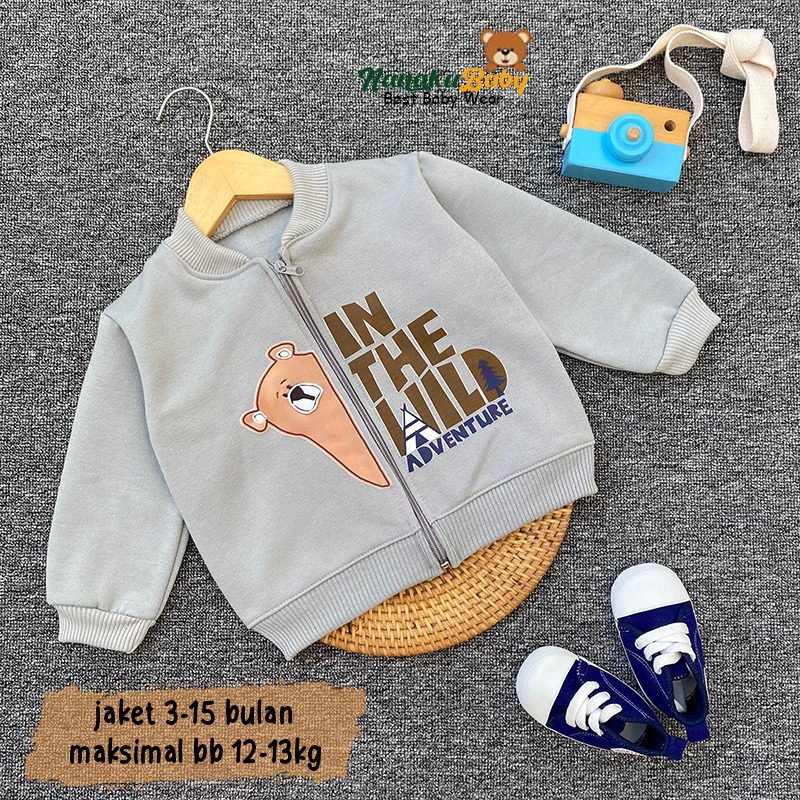 Nanaku Baby - Jaket Bayi Hangat / Crewneck Bayi Zipper / Baju Hangat Bayi Bahan Fleece Usia 3-15 Bulan Motif Adventure
