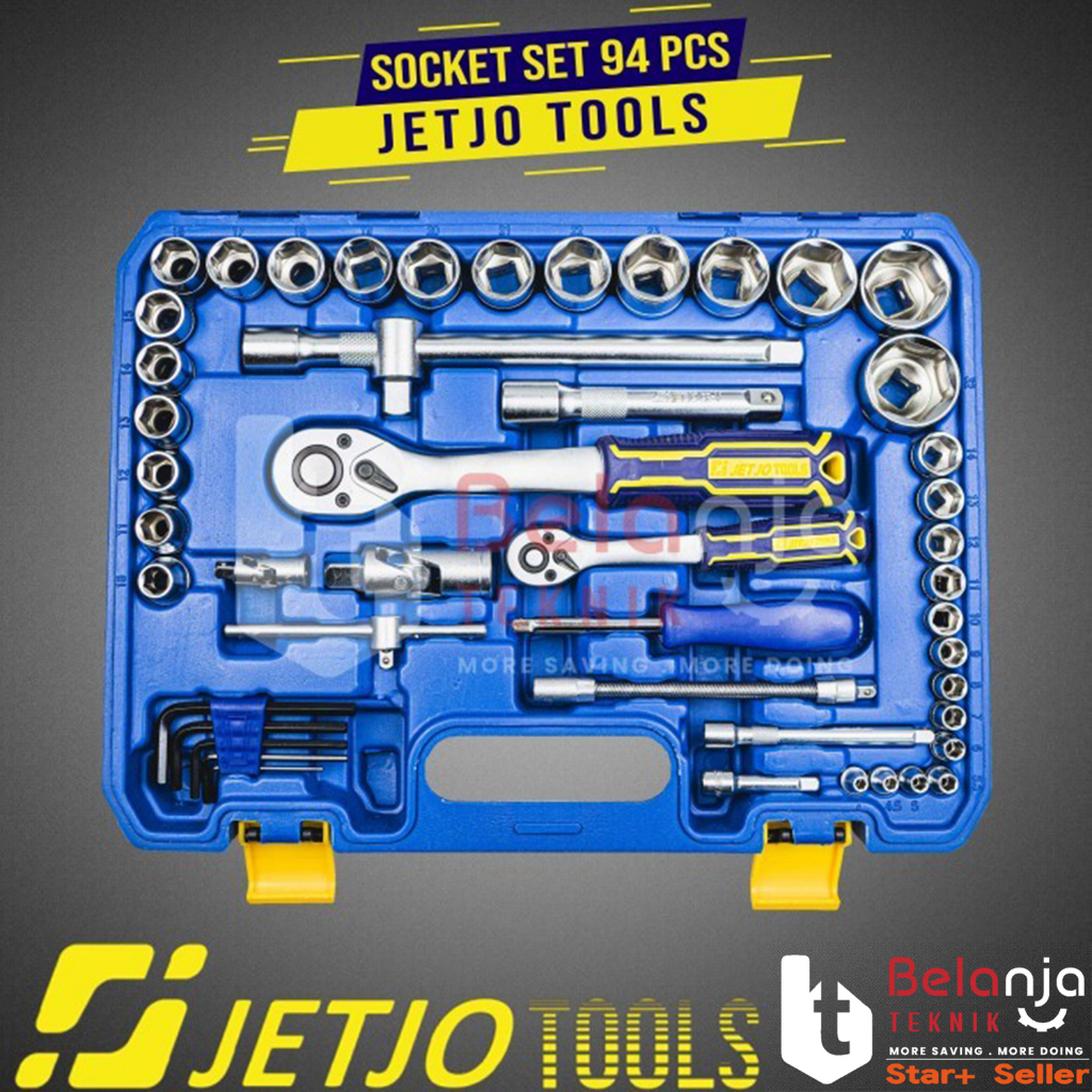 Jetjo Kunci Sock Set 94 Pcs Socket Wrench 1/4 94pcs 1/2 Inch 6 PT Sok