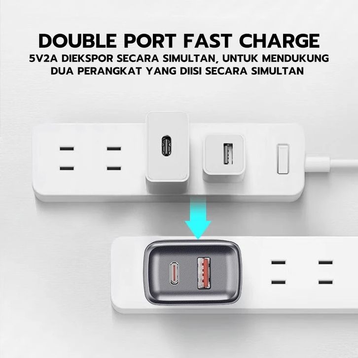 Charger Adaptor 30W Dual Port Charger Fast Charging Type-C + USB PD iOS Android - CA02