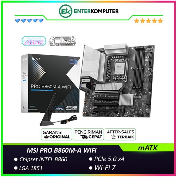 MSI PRO B860M-A WIFI (LGA1851, B860, DDR5, USB3.2 Gen2 Type-C, SATA3)