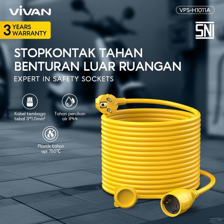 Gratis Ongkir - Vivan Safety Socket Outdoor Extension Cord Stop Kontak Tahan Air Ip44 Tahan Api 750°c Vps-h1011a Garansi