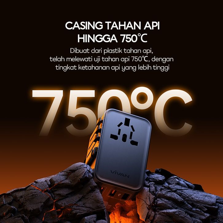 Gratis Ongkir - Vivan Travel Adaptor Vps-t006a | 70w Gan 10a Pd Qc 3.0 | Retractable Cable Type C | 5 Output - Garansi