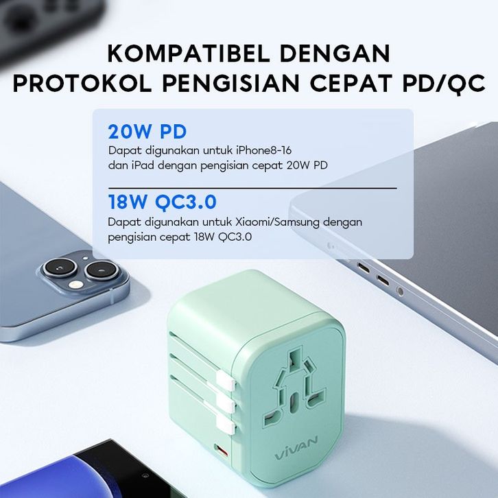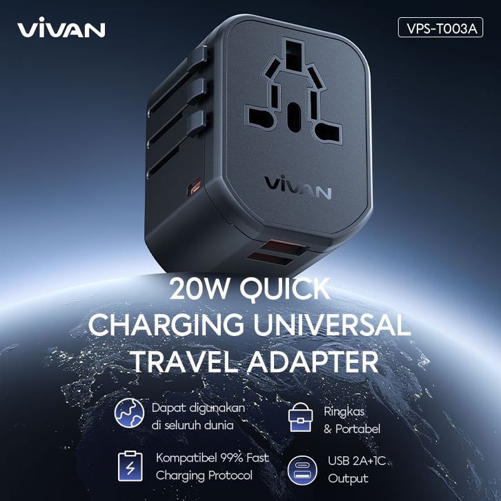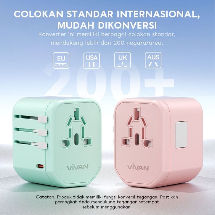 stop kontak - [free Cable] Vivan Universal Travel Adaptor 20w Vps-t003a Series Multi-country Snl Garansi 36 Bulan (2)