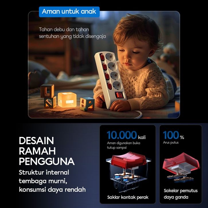 Gratis Ongkir - Vivan Safety Socket Vps-h004a Stop Kontak Saklar Soket 4 Lubang Power Strip Inti Tembaga Murni Plastik