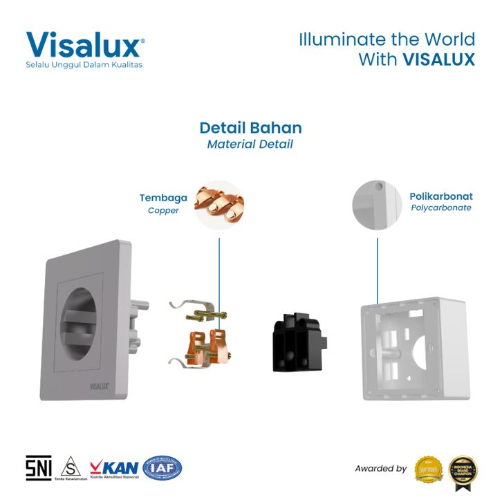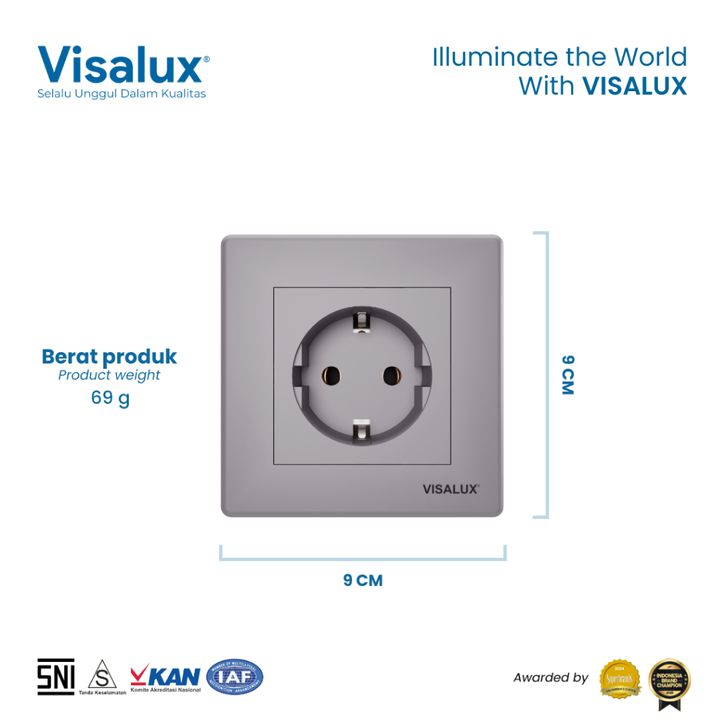 Gratis Ongkir - Visalux Stop Kontak Decor Series (16a) - 1g Dark Grey / Stop Kontak Premium (Vsd1016-dg)
