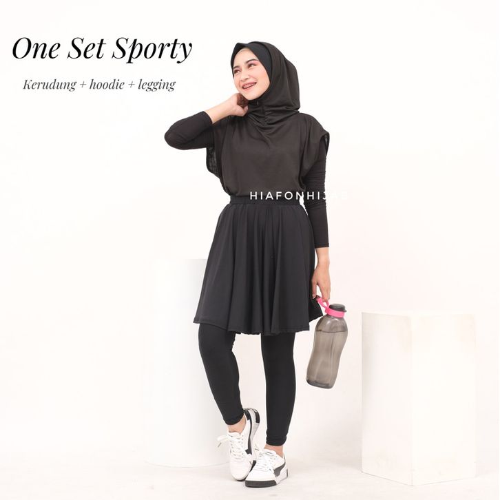 One Set Baju Olahraga Kerudung Hoodie Leggingrok One Set Sporty Baju Olahraga Belum Manset