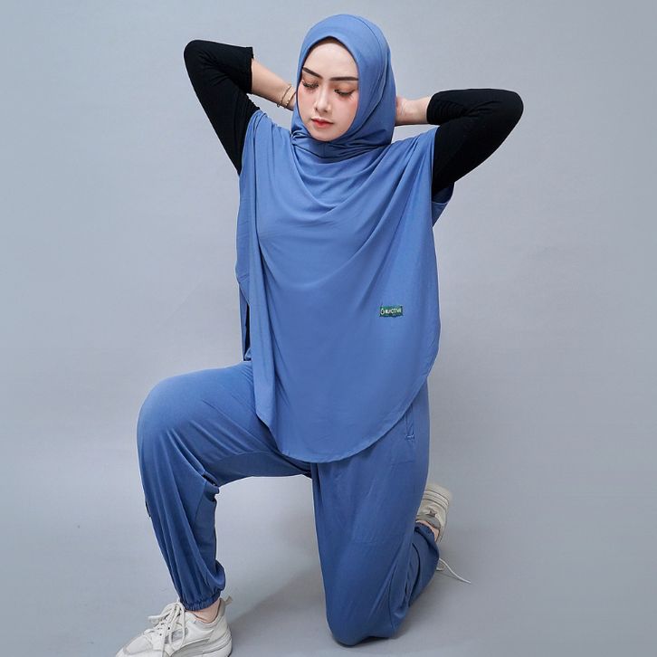 HIJACTIVE - Setelan Olahraga Wanita Muslimah Outer Hijab dan Celana Panjang Jersey Premium
