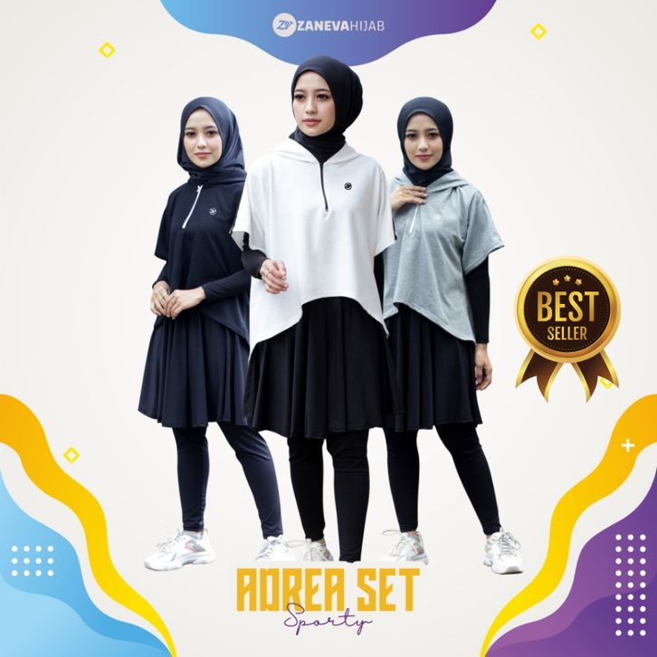 BEST SELLER ZANEVA SPORTWEAR - Adrea Hoodie & ie Legging Rok / Stelan Olahraga Wanita Muslimah