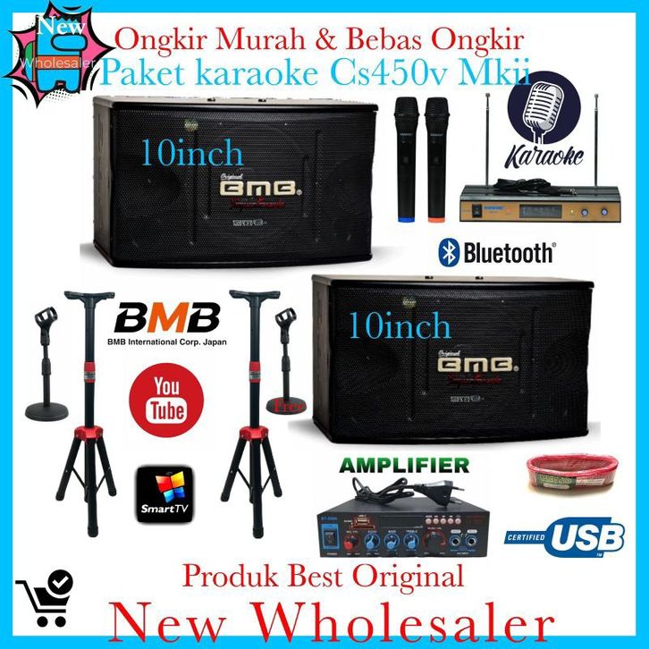 TERLARIS PAKET SOUND KARAOKE SPEAKER BMB CS450V 10INCH MKII ORIGINAL RESMI 2 MIC WIRELESS