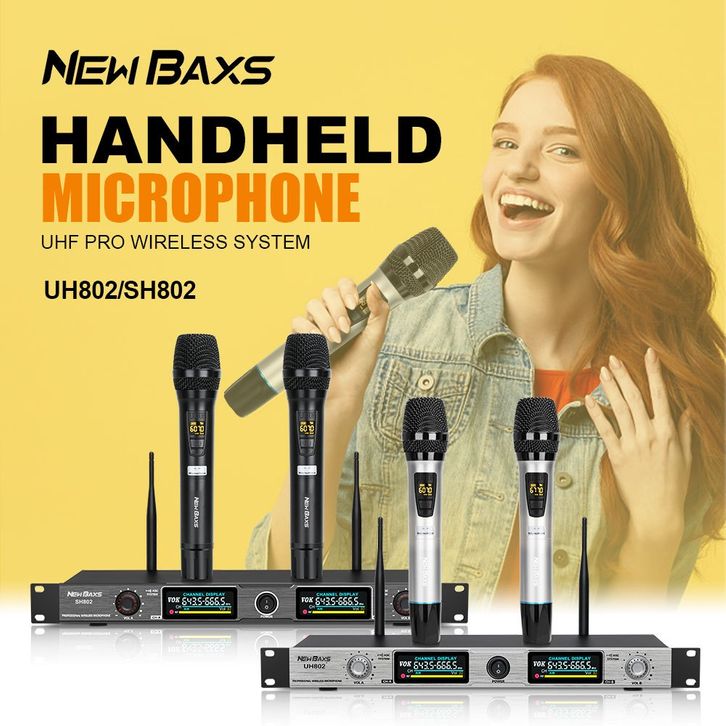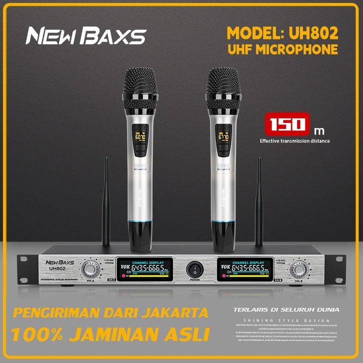 TERLARIS NEW BAXS MIKROFON NIRKABEL PROFESIONAL SH802 / UH802 WIRELESS MICROPHONE KARAOKE SATU DEREK DUA GENGGAM UHF NI