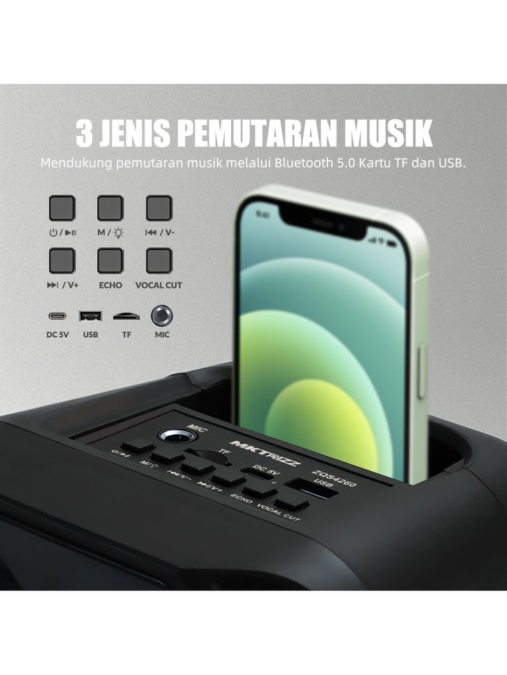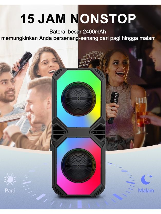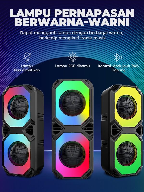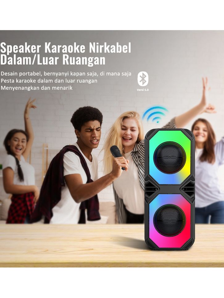 TERLARIS MAIKET SPEAKER BLUETOOTH KARAOKE BESAR SUPER BASS WITH TWO FREE WIRELESS MIC ORIGINA PORTABLE SALON AKTIF BLUE