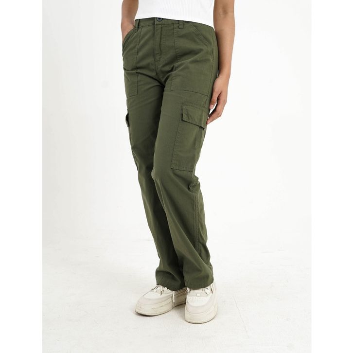 3Second Celana Cargo Wanita Panjang Loose Fit Katun Twill Cargo On OL-C051024
