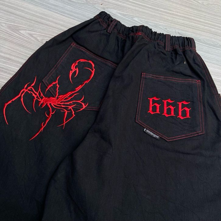 CELANA PNJANG HITAM BAGGYPANTS DENIM MOTIF BORDIR UNISEX SPESIAL SERIES NOTBADCLUB