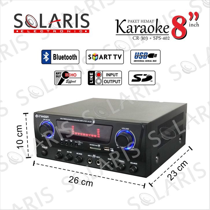 TERLARIS PAKET SPEAKER KARAOKE 8 INCH PLUS STAND CRIMSON CR-303 BONUS MIC
