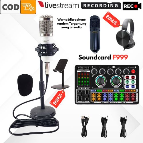 TERLARIS PAKET MICROPHONE CONDENSER BM800 PLUS SOUNDCARD F999,F998,V8 FREE HEADSET DAN HOLDERPHONE