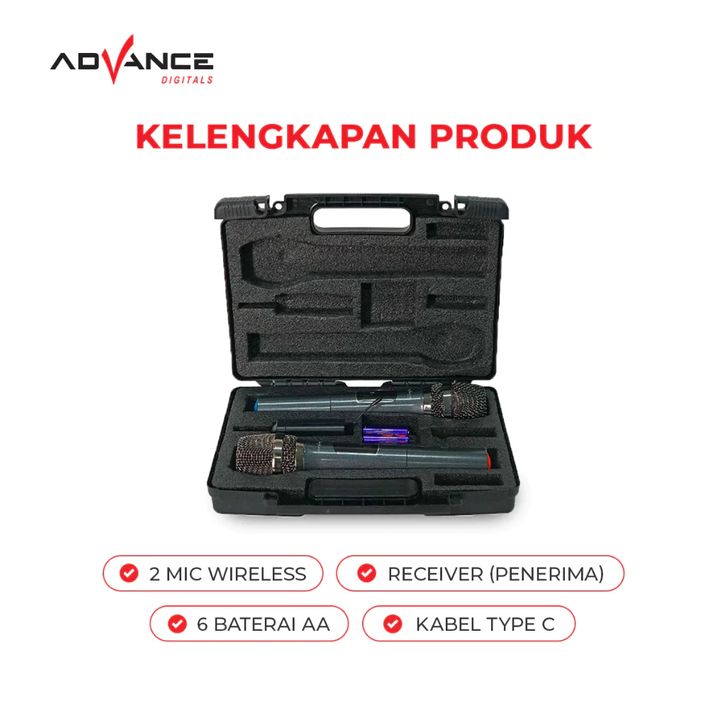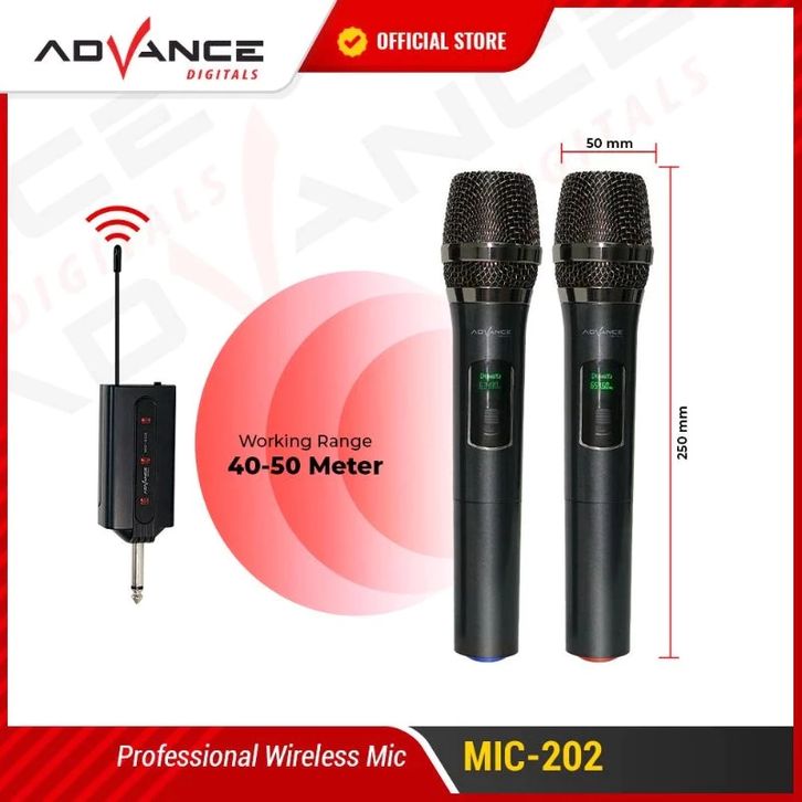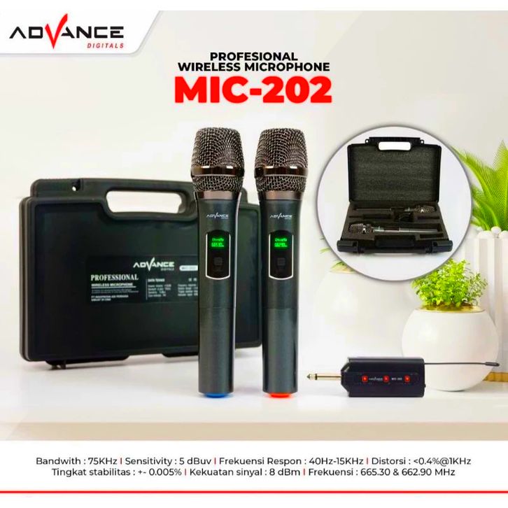 TERLARIS 【】 ADVANCE MIC-202 PROFESIONAL 2 MIC WIRELESS MICROPHONE KAROKE MIC MIKROFON DENGAN KOPER