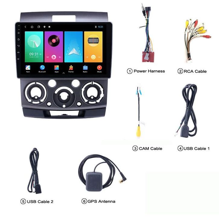 HU Android 10 untuk Ford Ranger Mazda BT 2008 Paket PnP tunggal pasang