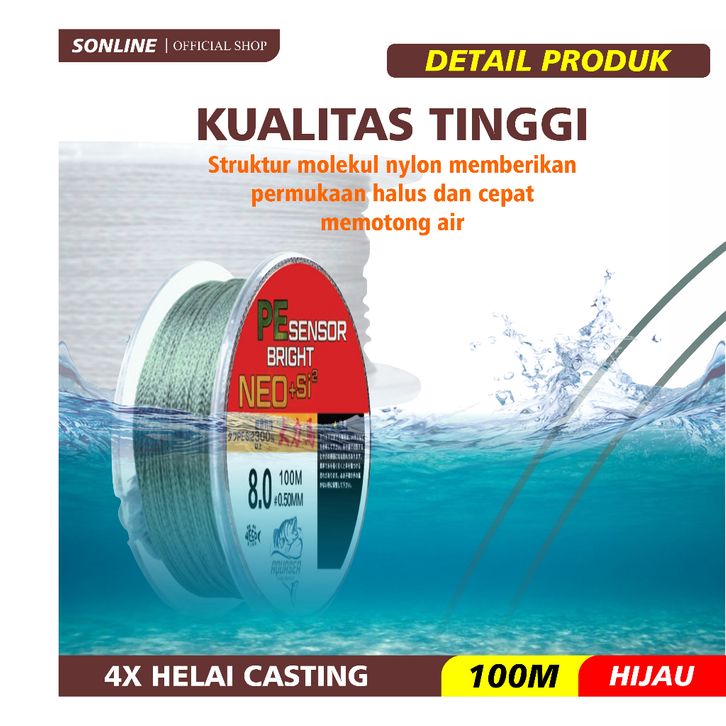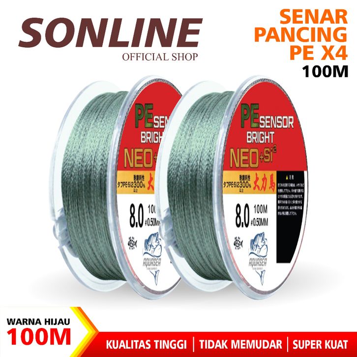 SON- Tali Pancing 100m Senar Pancing PE Sensor Brht Warna Hijau Sensor NEO+si2 Jepang Senar Pancing