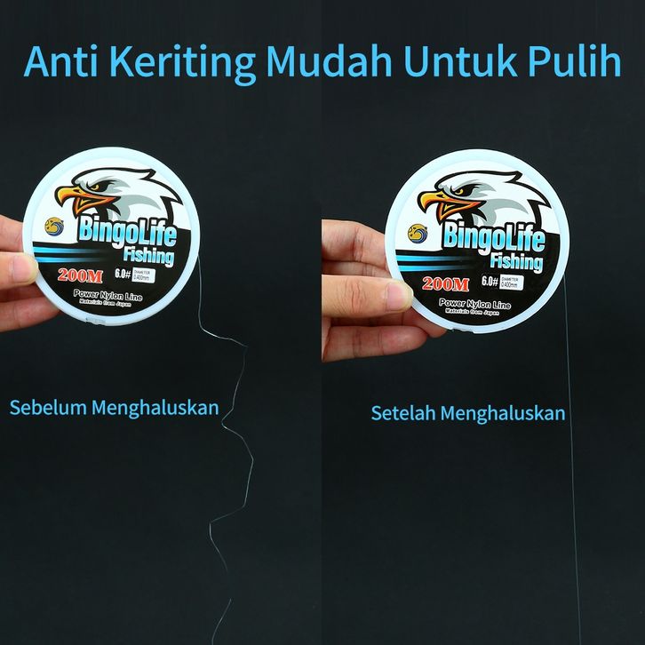 BingoLife Senar Tali Benang Pancing Nilon Jepang Biru Hijau Merah 0.12mm~0.55mm Panjang 200m