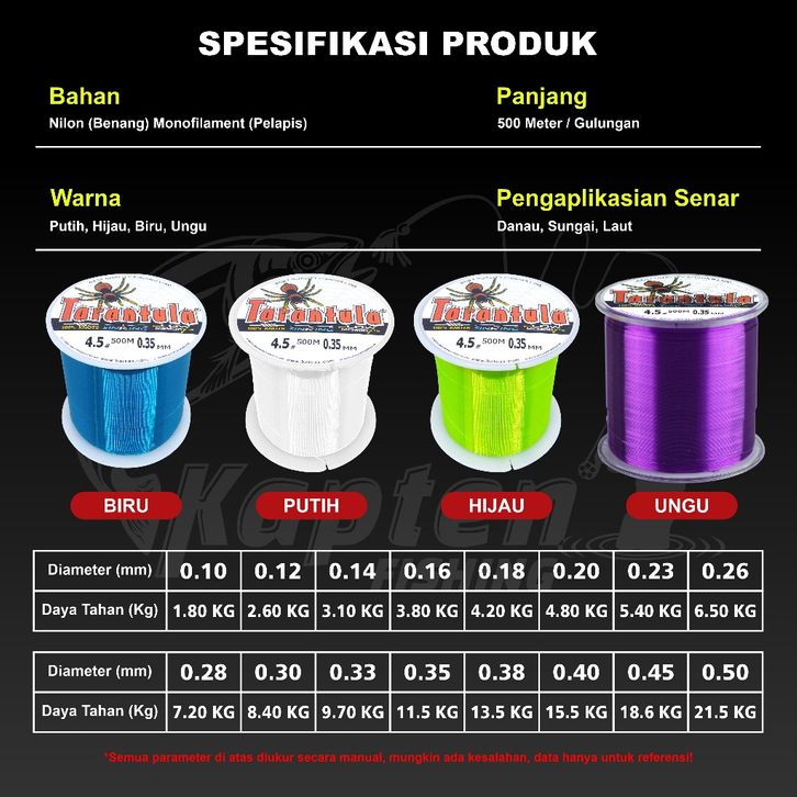 KaptenFishing TARANTULA Meter Nilon Tali Pancing Bahan Nilon Pancing Anti Keriting SuperKuat lagi