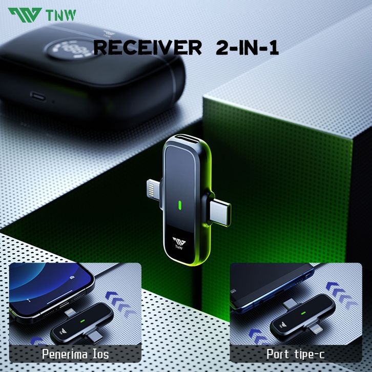 TNW A13 Wireless Microphone 2-In-1 Clip On Mic Wireless Dual Lavalier Mikrofon Iphone dan Charging Case Bluetooth Mikrof