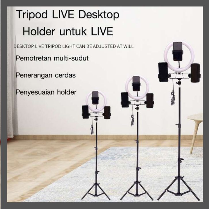 Lampu LED Ring Light 26/33/45 cm dan Tripod 2.1 M Free 3 Holder Hp Studio Streaming Konten Kreator