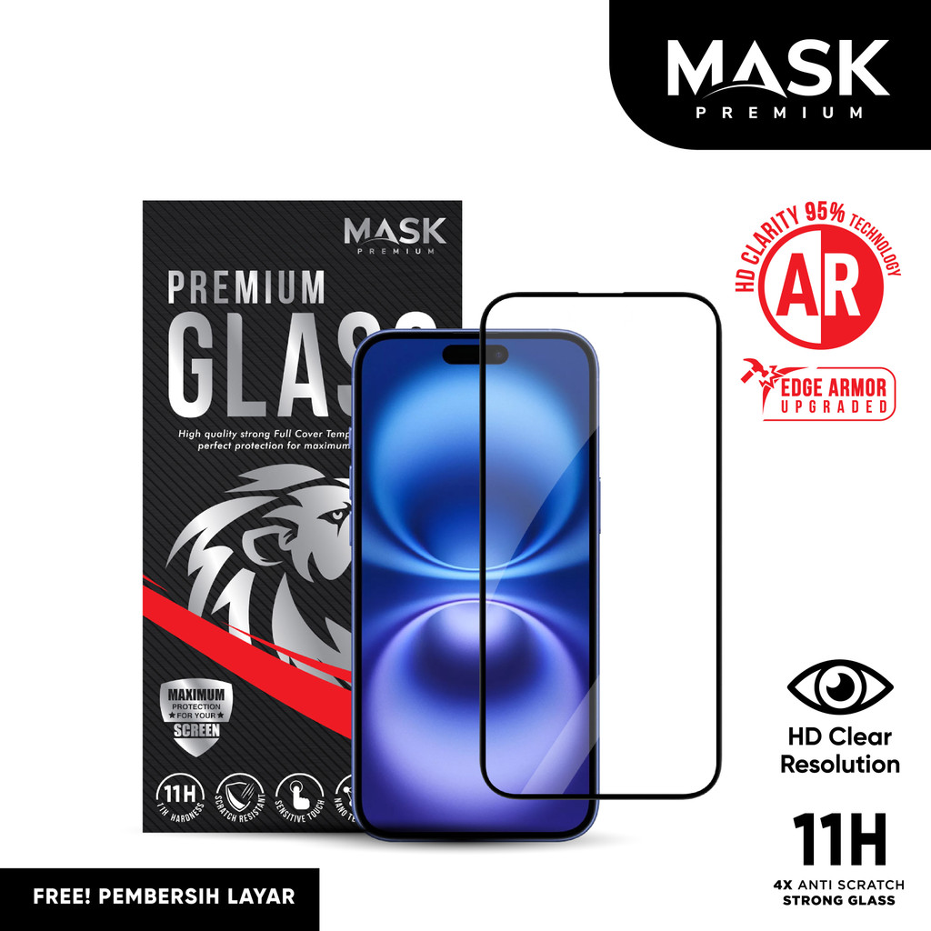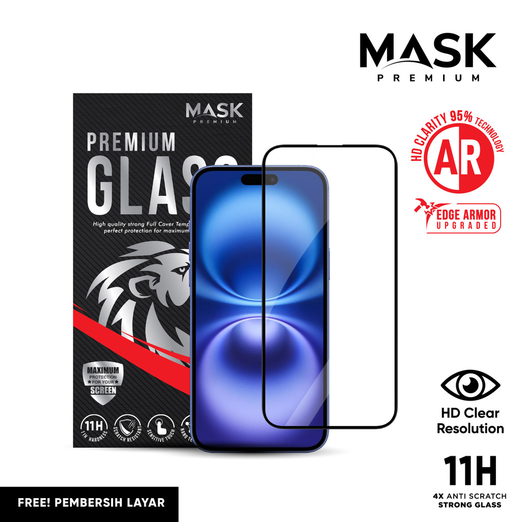 [Star] Anti Gores Anti Reflective 95% For Iphone 16/15/14/13 Series 3D Tempered Glass Full Cover Mask Premium