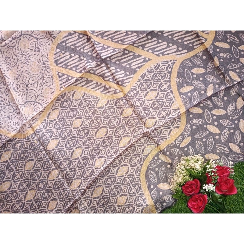 kain batik wanita dress kondangan cap kombinasi tulis bahan viscose viskos fiskos viscos semi sutra sutera motif pulo pu