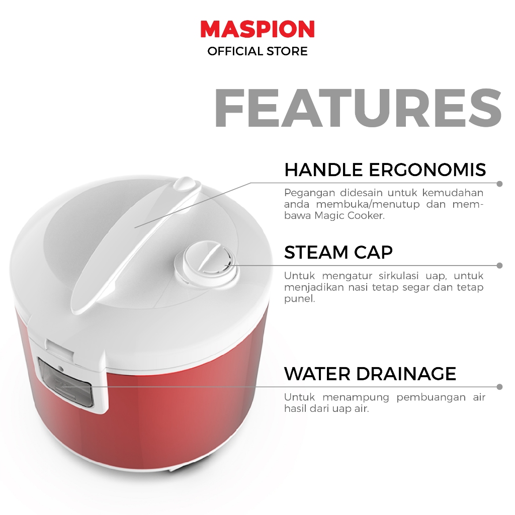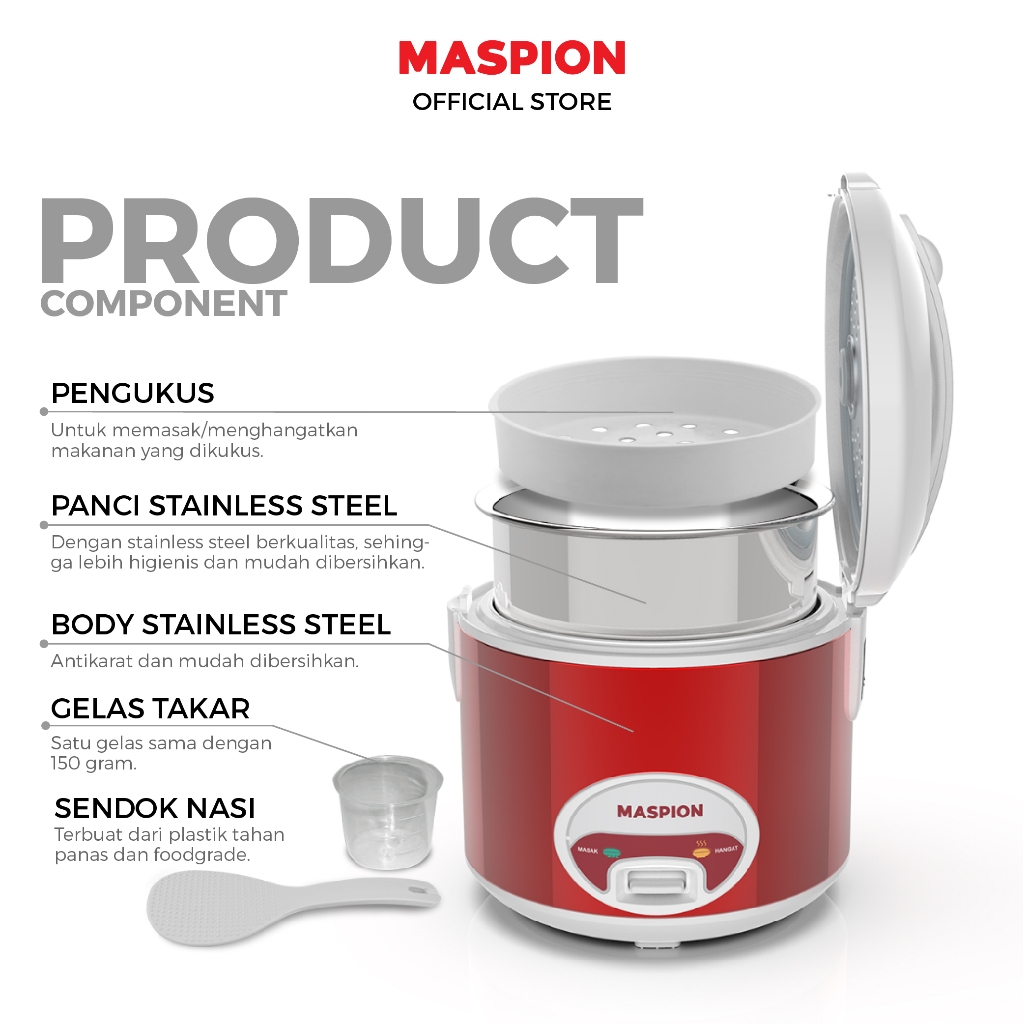 NEW ORIGINAL Maspion Rice Cooker Magic Com Stainless Steel 1.8 Liter MRJ-1808 MS