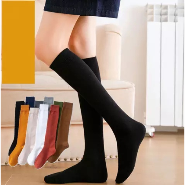COMSFEET - Kaos Kaki Panjang Selutut Pria Wanita Dewasa Kaos Kaki Polos Long Socks Bahan PE