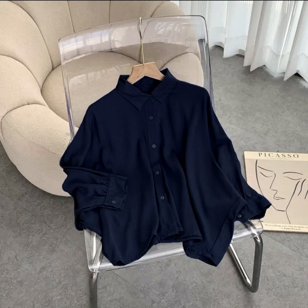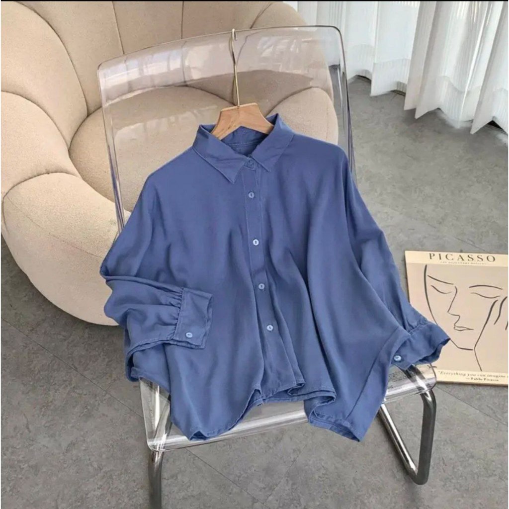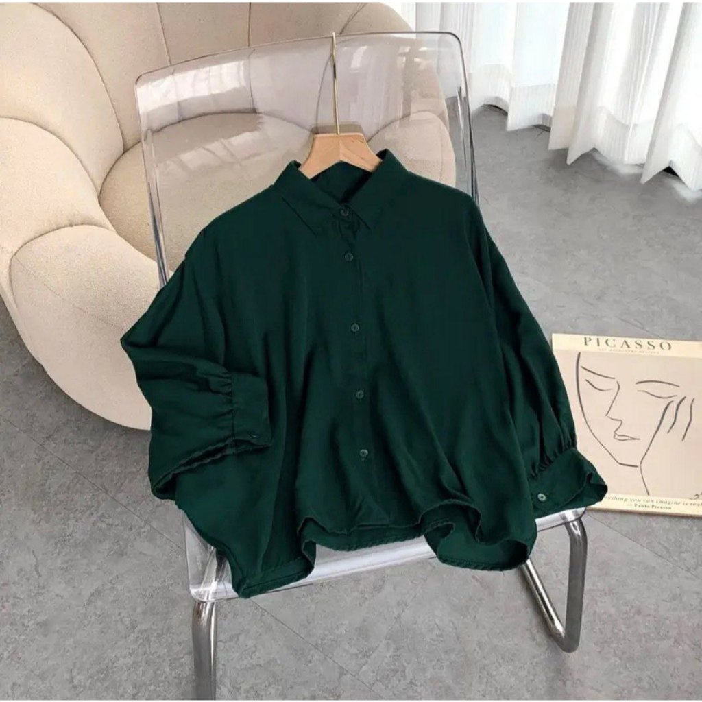 Atasan Kemeja Crop Top Wanita Polos Batwing Blouse Lengan Balon Oversize Shakila Twill