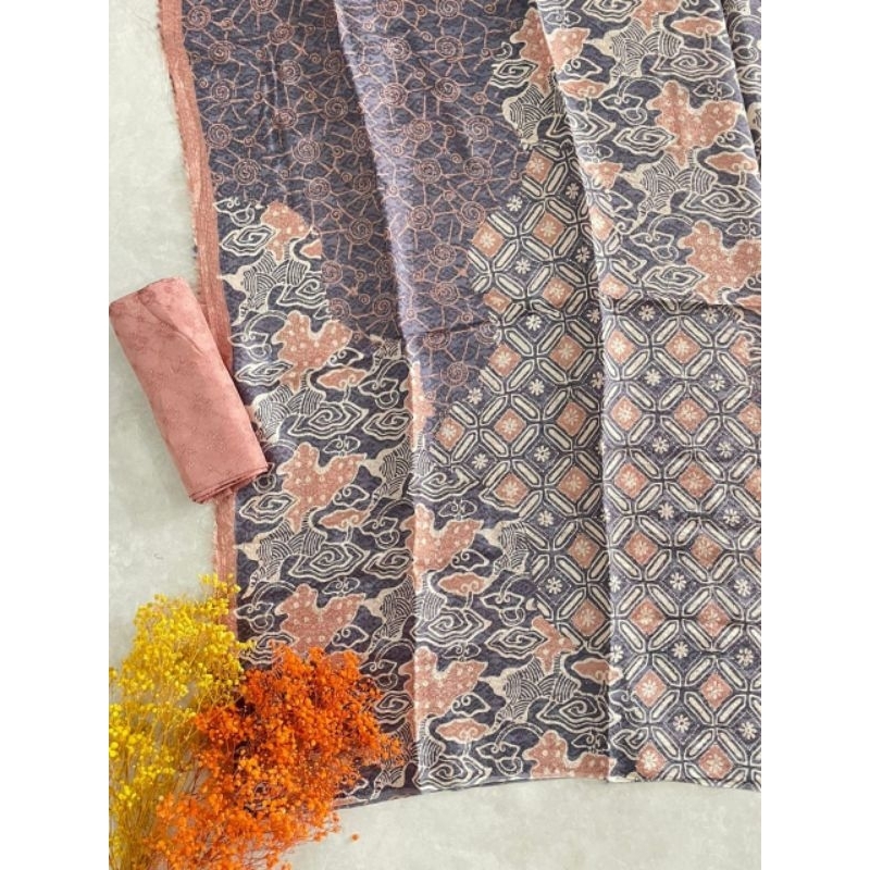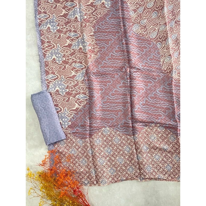 kain batik motif pulauan puloan bahan viscose semi sutra warna soft pastel cirebon