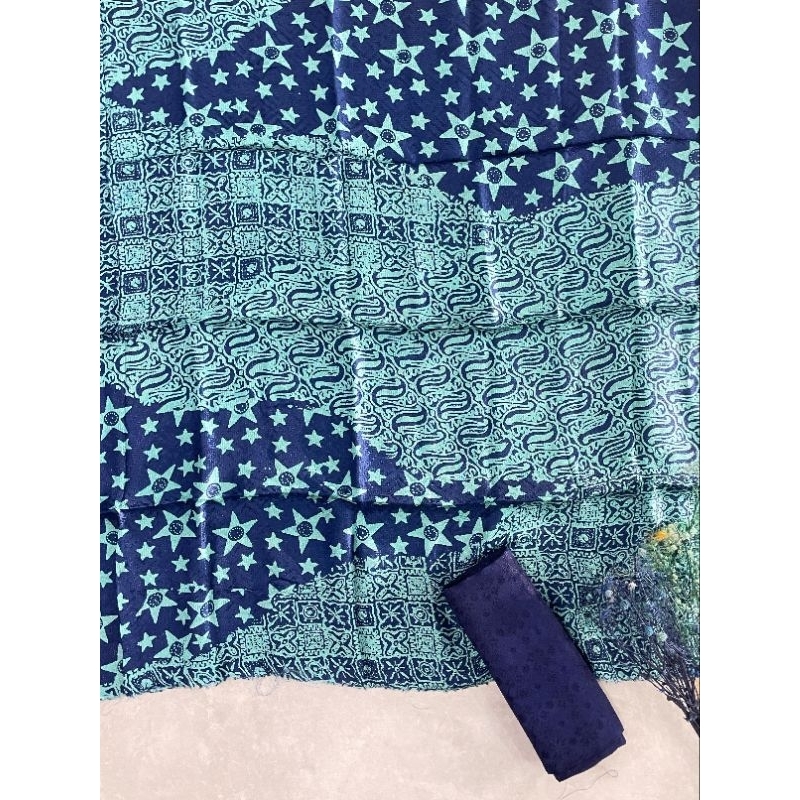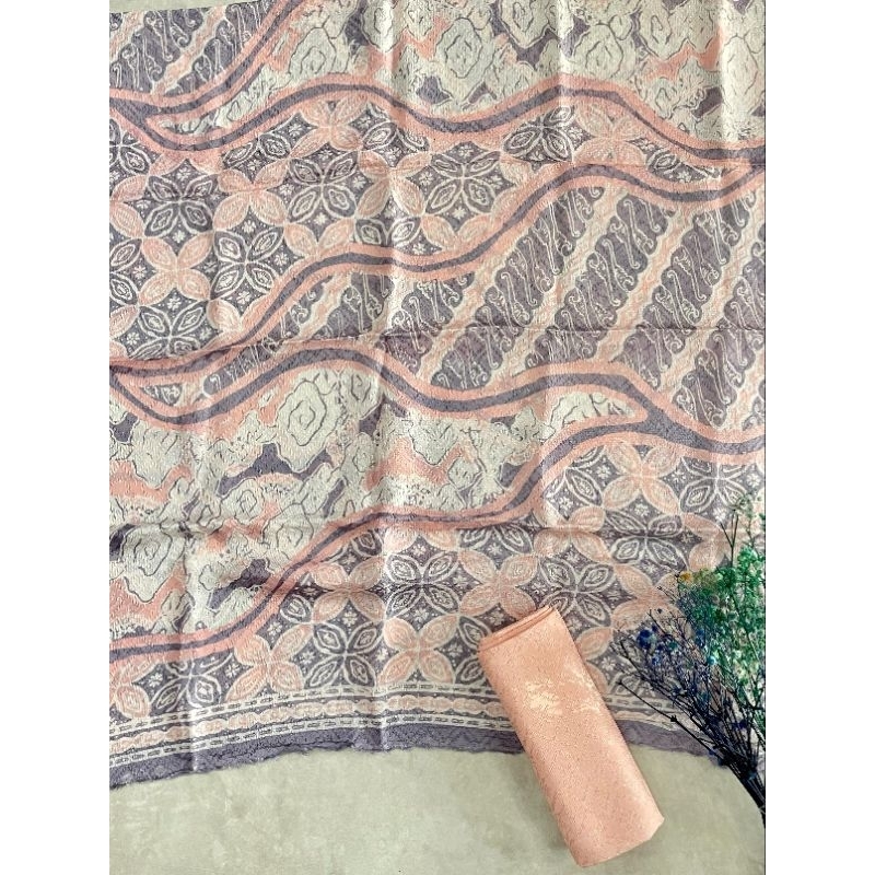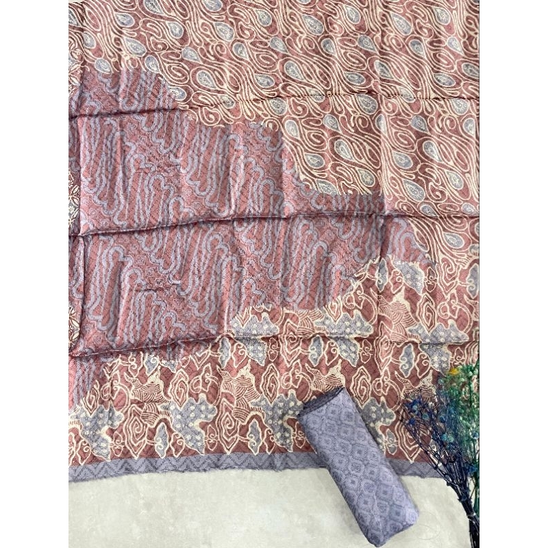 kain batik setelan motif pulauan puloan khas trusmi cirebon bahan semi sutra viscose
