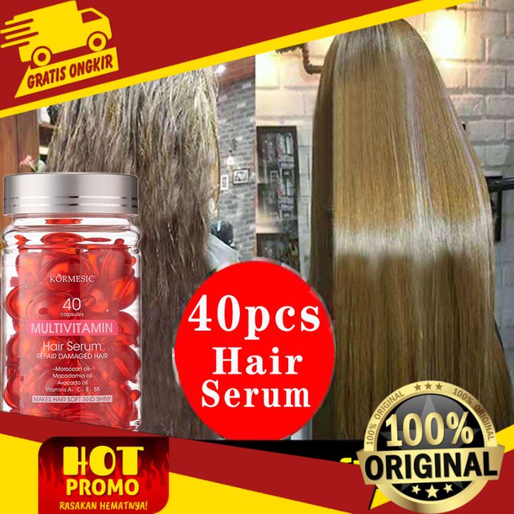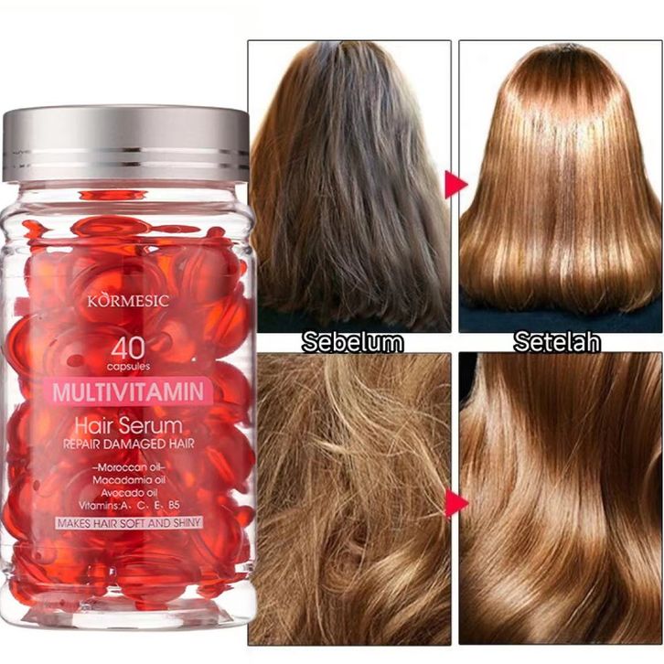 40 kapsul Hair Vitamin (dengan Moroccan Oil) Kemasan Botol Original Silky Shine Hair Serum Pelembut Rambut Repair Hair O
