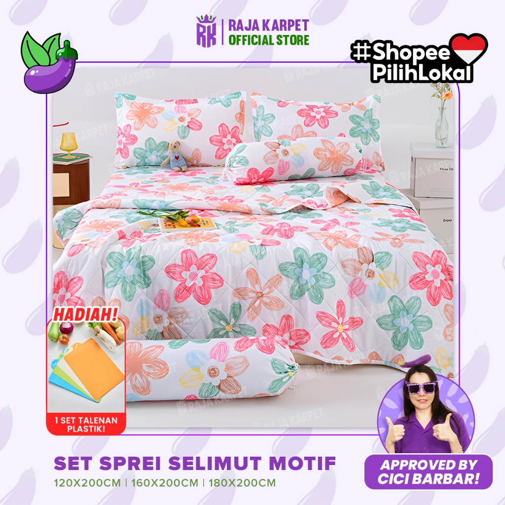 RAJA X CICIBARBAR Set Bedcover Sprei Set Sarung Bantal Guling Set Seprei Selimut Sarguntal Microtex FREE TALENAN WARNA