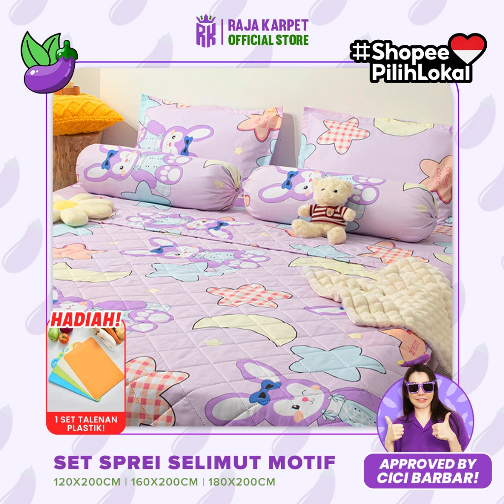 RAJA X CICIBARBAR Set Selimut Sprei Set Sarung Bantal Guling Set Bedcover Seprei Sarguntal Microtex FREE TALENAN WARNA