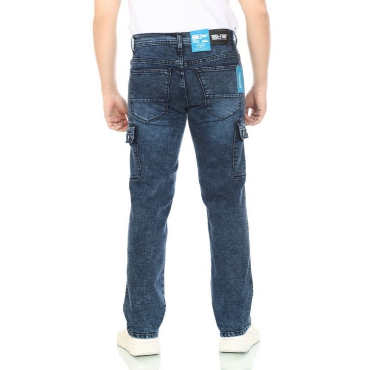B-FOUR Celana Cargo Jeans Pria Loose Fit Reguler / Cargo Pants Jeans Reguler Standard Denim Washed Bio