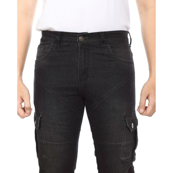 B-FOUR Cargo Jeans Pria Original Denim Elastis Cargo Denim warna Black wash