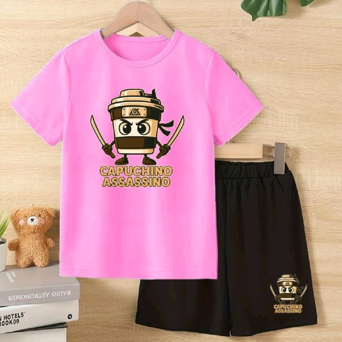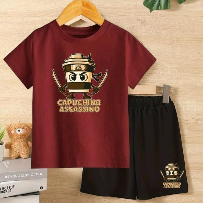 setelan baju anak capuchino assassino tung tung sahur 17 agustus - ninja hitam S 1-2TH