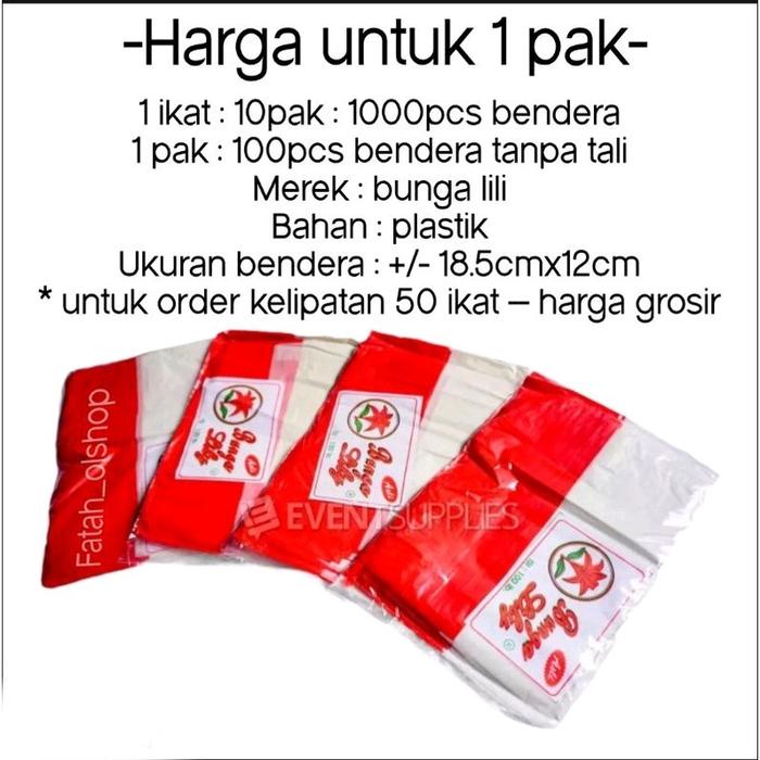Bendera Plastik Merah Putih Bendera Plastik 100 Lembar Indonesia Hiasan 17 Agustus Tali - hanya tali