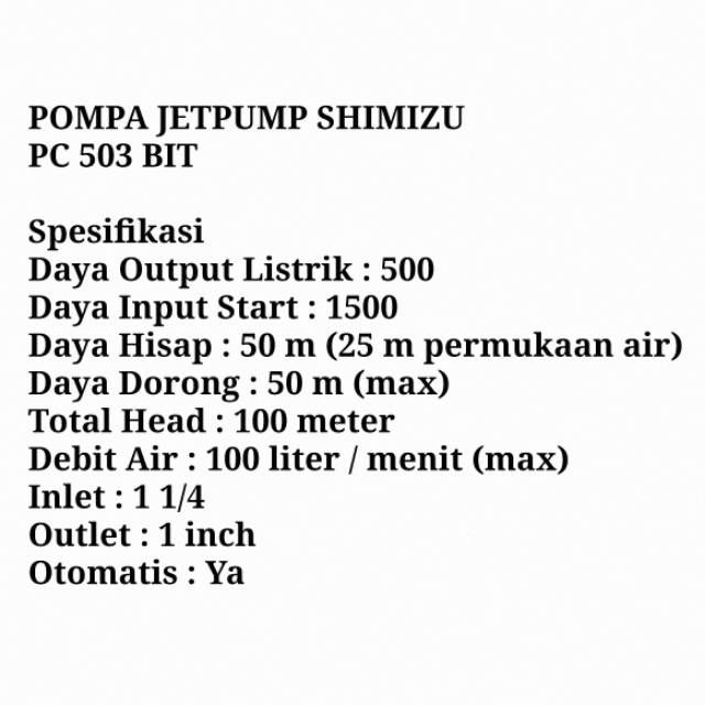 POMPA AIR JET PUMP SHIMIZU - PC 503 BIT - 500 WATT plus TABUNG 19LT