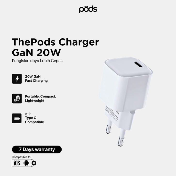 charger ip PRODUK VIRAL Fast Charging Charger Mini Adaptor GaN 20W Kabel Data Set Type C Port for iOS Samsung Android P