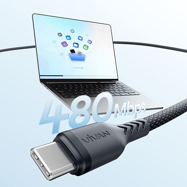 charger ip VIVAN BUS Kabel Data Cable Toples Kaleng 1M VBUSCC USB-C to USB-C / VBUSC Type C / VBUSL Lightning / VBUSM M